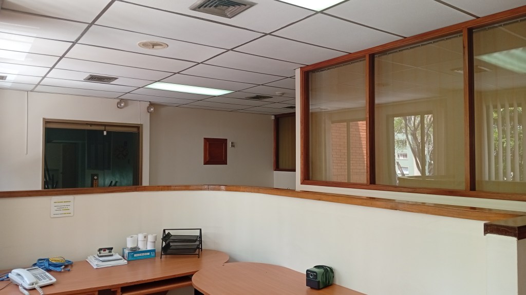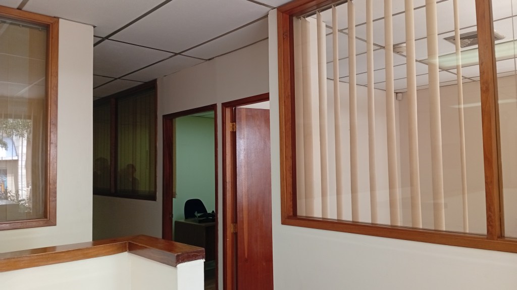 - Oficinas Privadas: Cuenta con cuatro (4) despachos independientes, delimitados por cerramientos de madera y vidrio que permiten el paso de luz natural, manteniendo la privacidad acústica necesaria para labores gerenciales.